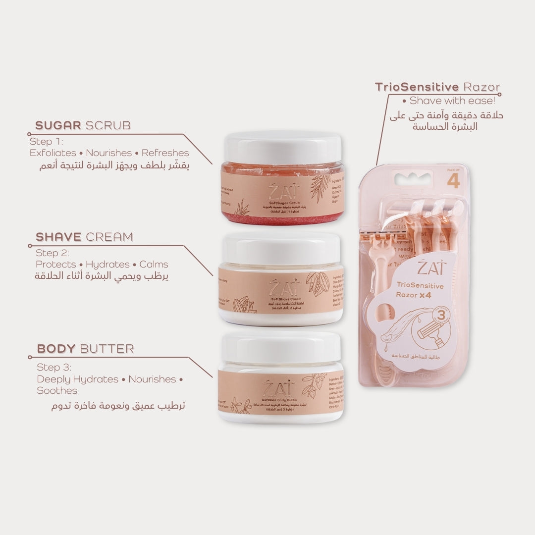 Elevate your shave with ZAT's Full Shaving Routine for a luxurious at-home spa experience.